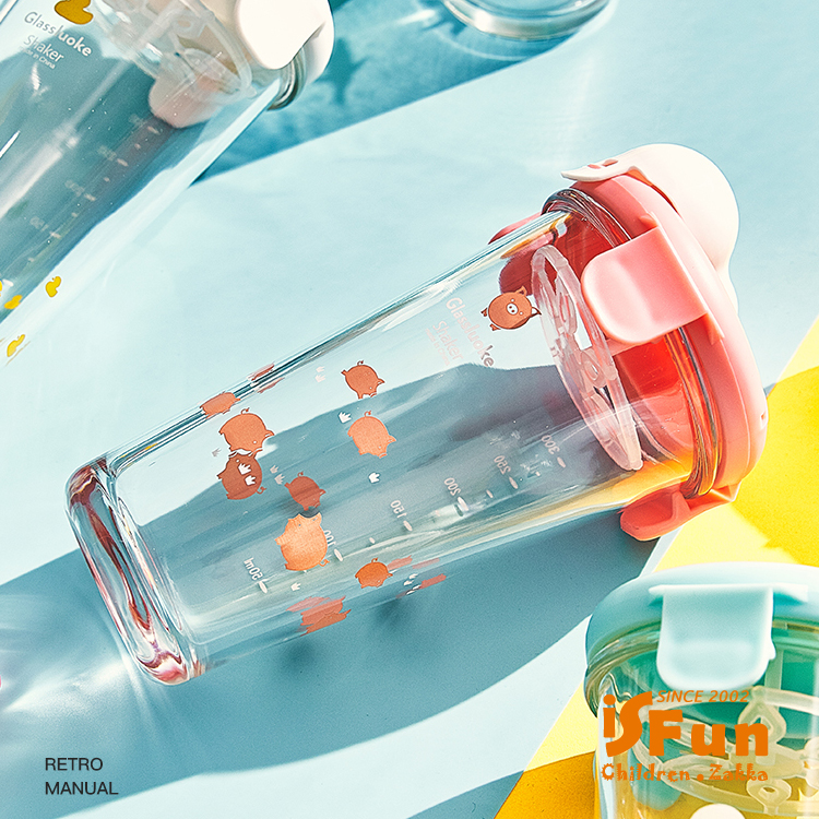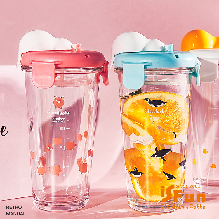 【iSFun】飛翔動物*附繩隨身泡茶玻璃水杯450ML/粉豬