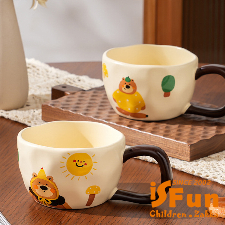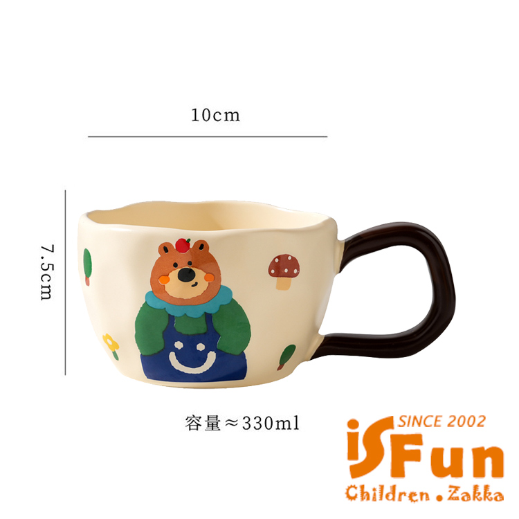 【iSFun】可愛小熊 高顏質陶瓷馬克杯茶杯330ml/藍綠衣