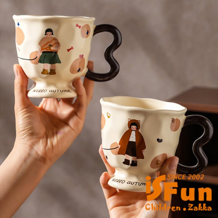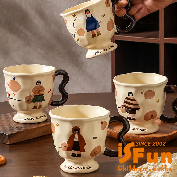 【iSFun】復古女孩 優雅可愛陶瓷高腳馬克杯400ml/綠短裙