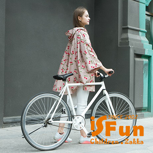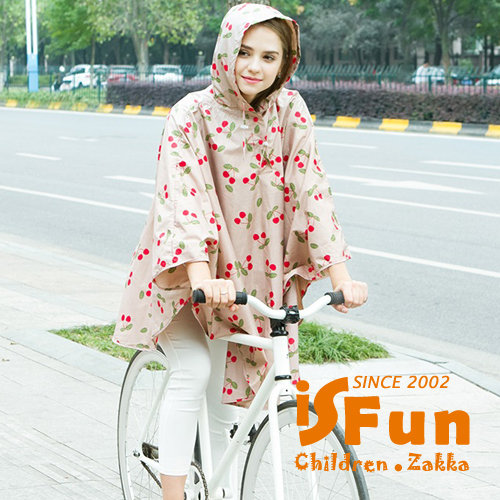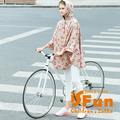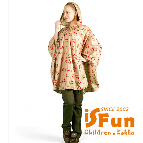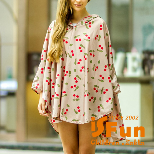 【iSFun】成人專用*短版斗篷式雨衣/L號米櫻桃