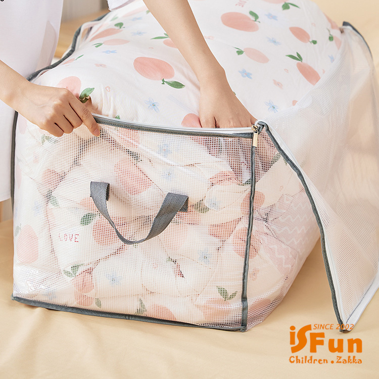 【iSFun】日系透視*防水透視衣物棉被收納袋/灰邊橫款