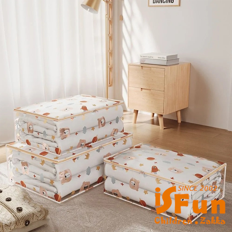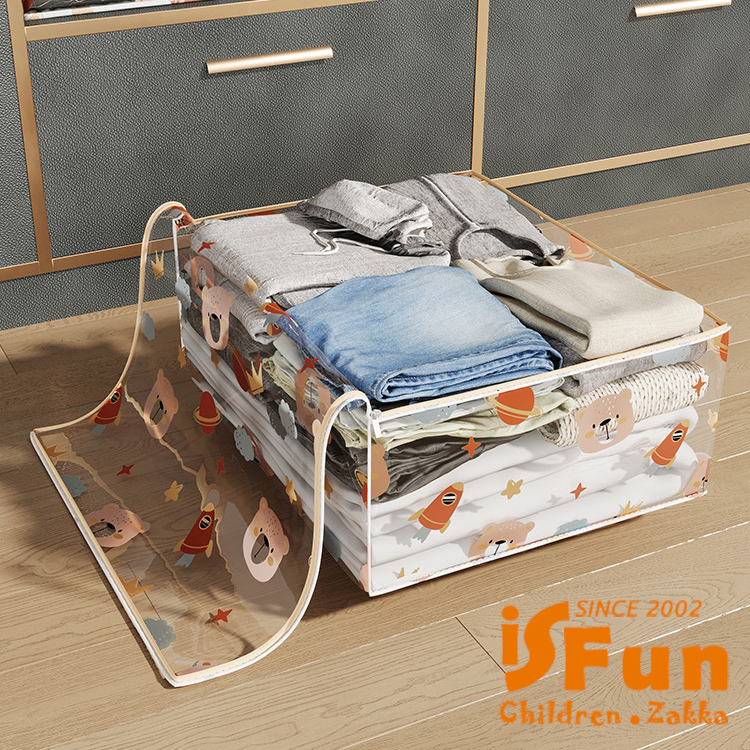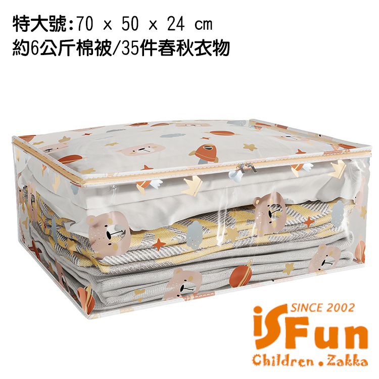 【iSFun】可愛印花 防水透視衣物棉被特大號收納袋/星球小熊