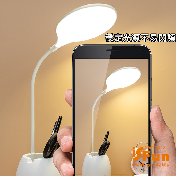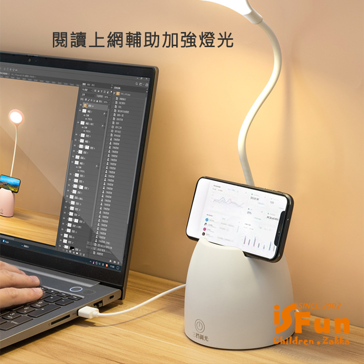 【iSFun】閱讀幫手*USB充電可彎曲手機支架檯燈/粉