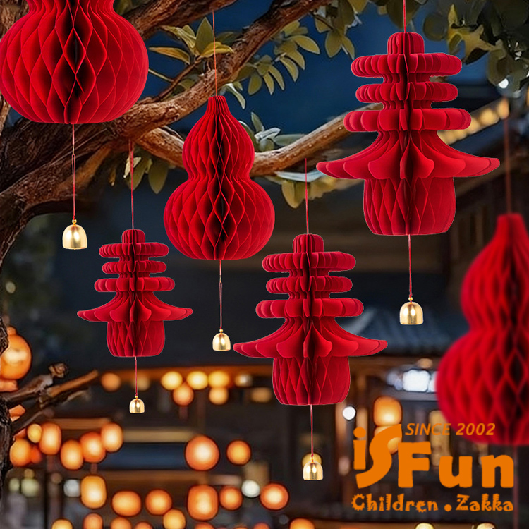 迎新納福新春風格掛飾,蜂窩燈籠展現吉祥,