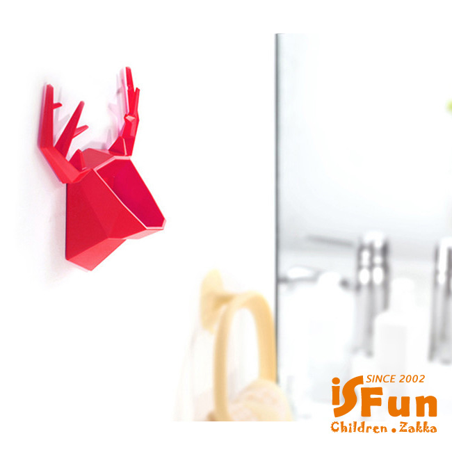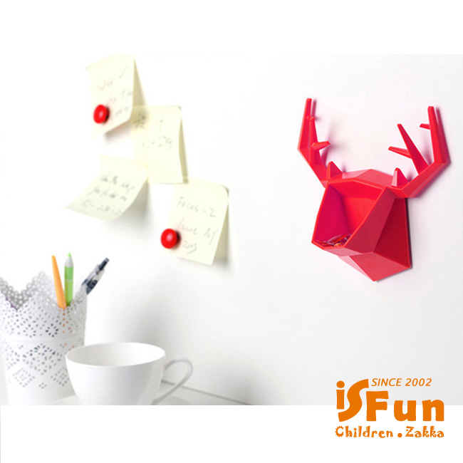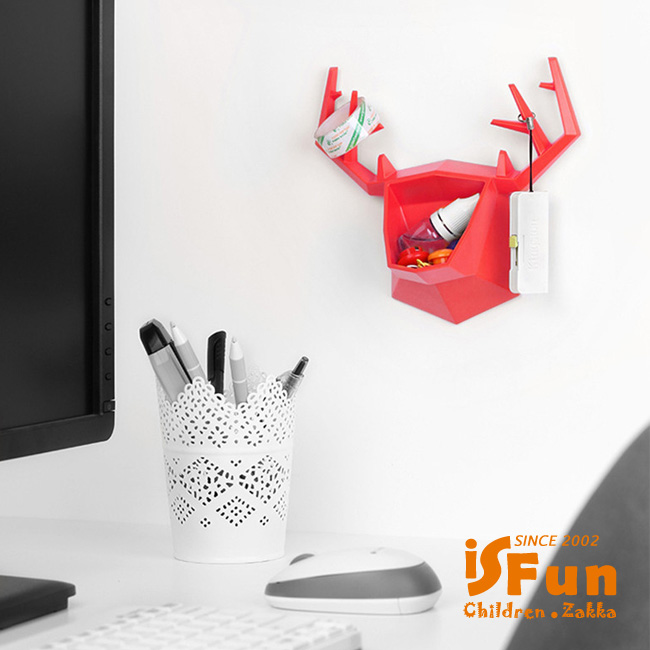 【iSFun】創意鹿角*壁貼式置物收納盒/紅