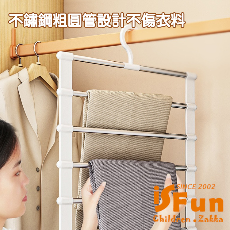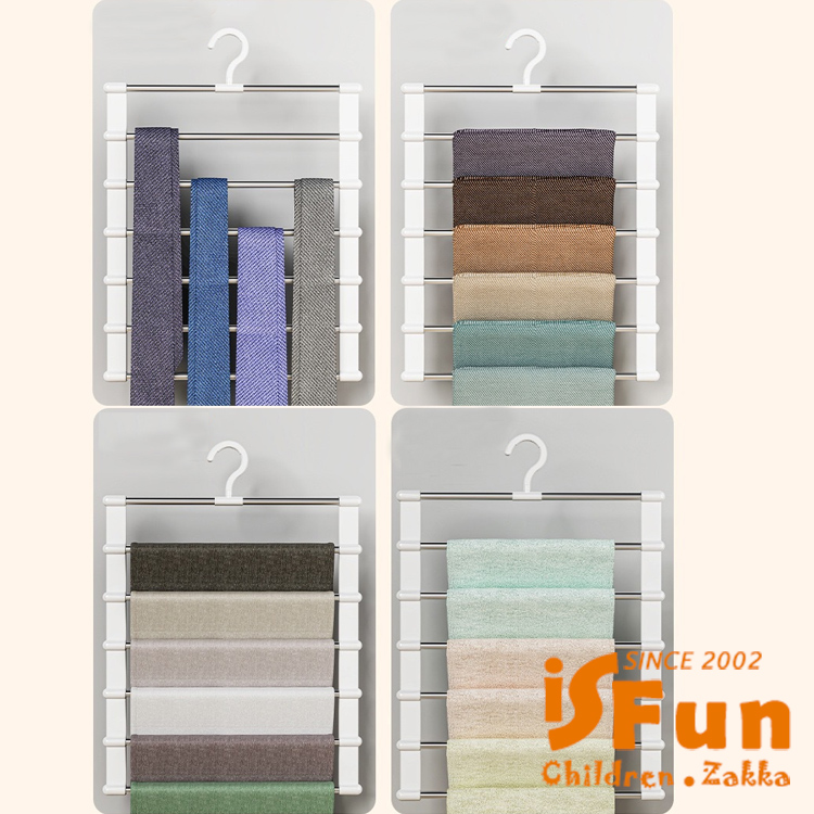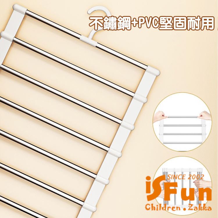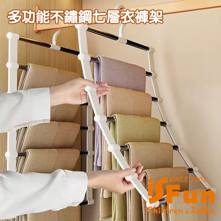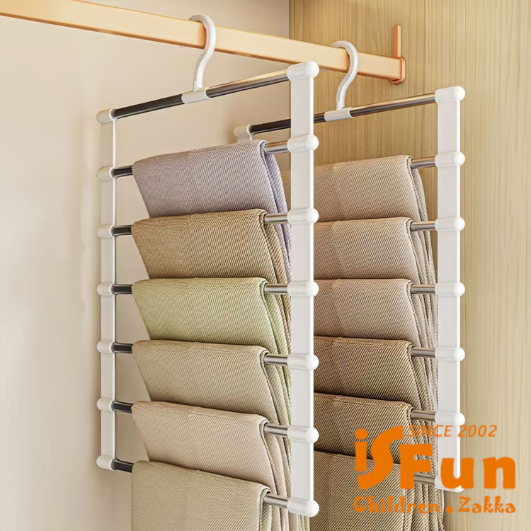 【iSFun】多功能衣架 雲梯衣褲圍巾無痕摺疊收納/7層款