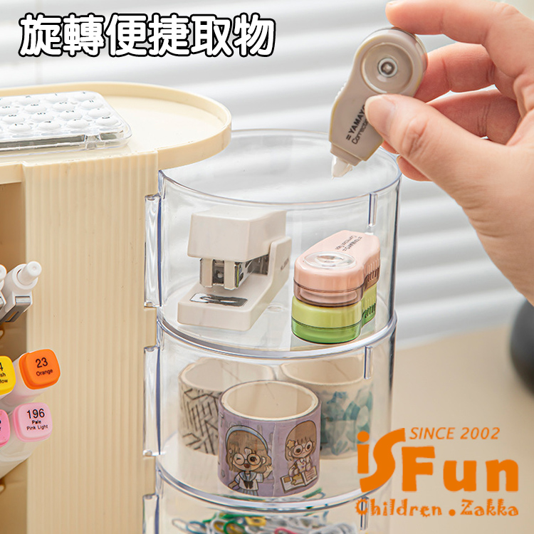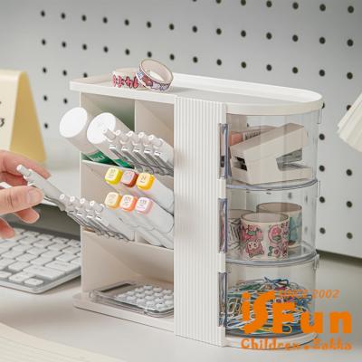 【iSFun】多格收納 斜插旋轉多功能筆筒置物架/白色