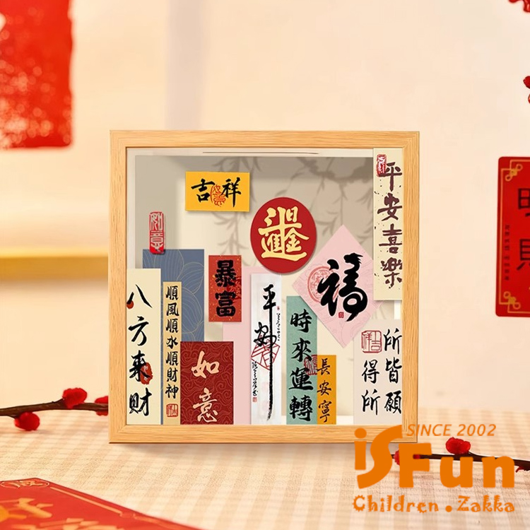 【iSFun】拼貼喜氣 相框造型實木存錢筒/時來運轉