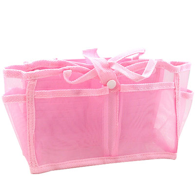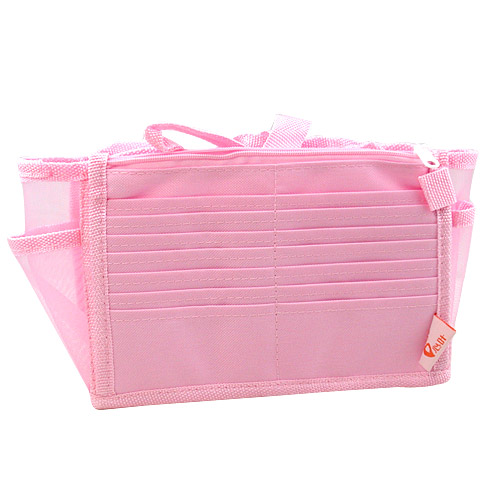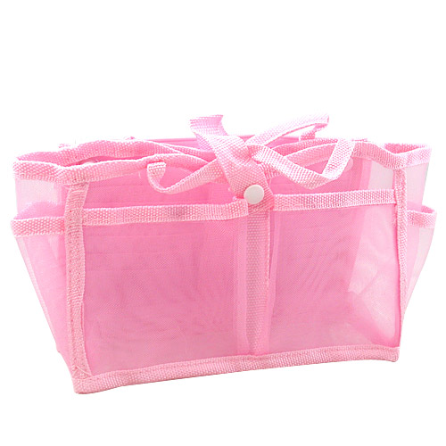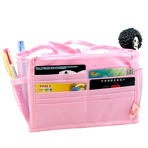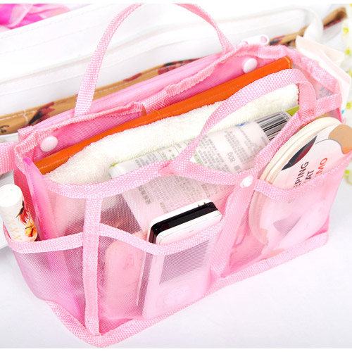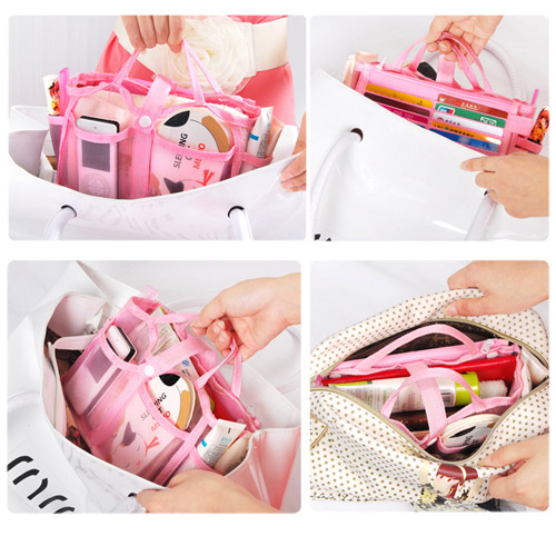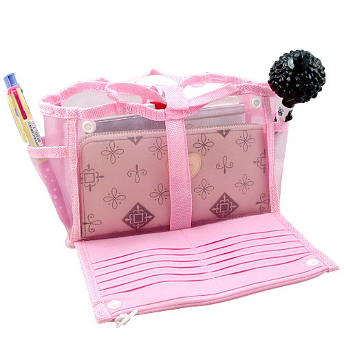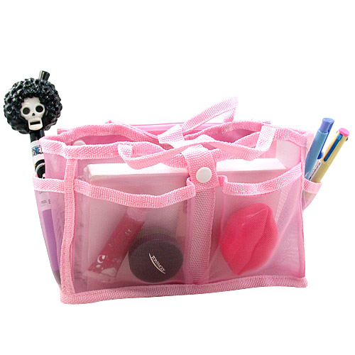 透明網狀材質所打造的包中袋款,尼龍質料讓袋身不會軟趴趴,可清楚找到想拿的東西,