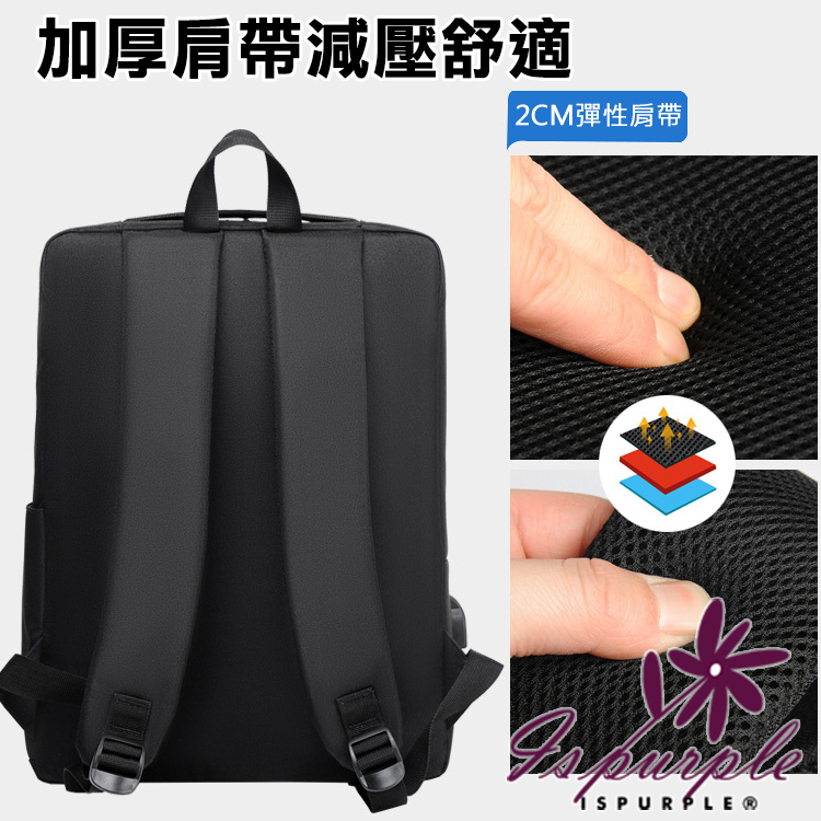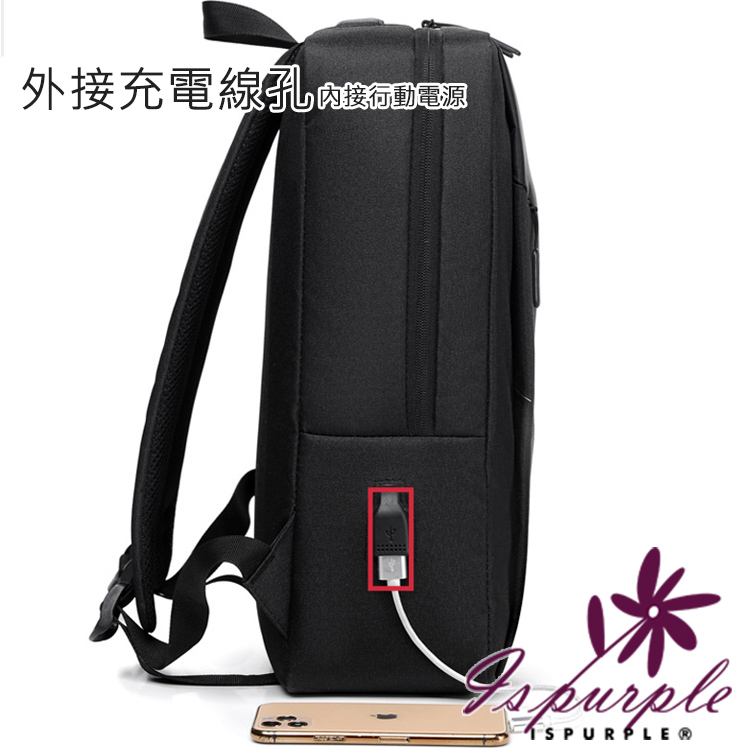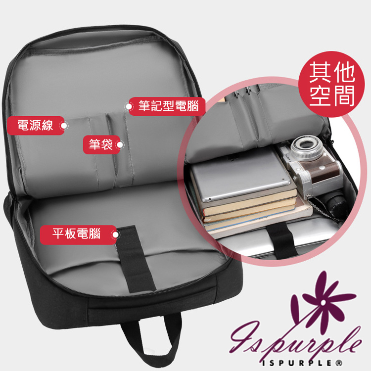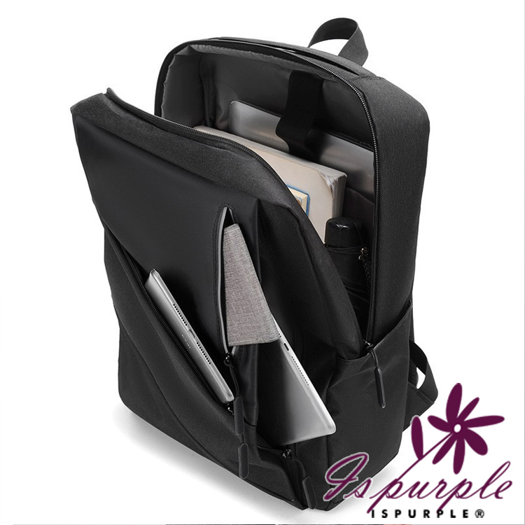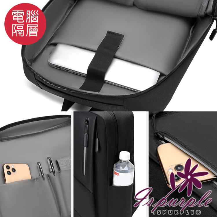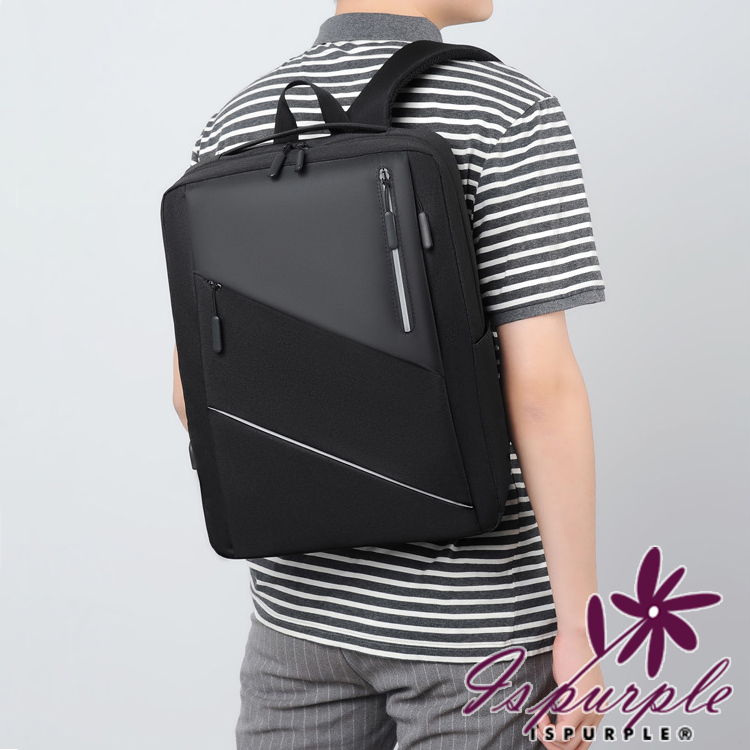 【iSPurple】時尚休閒 商務出差14吋反光條雙肩電腦包/黑
