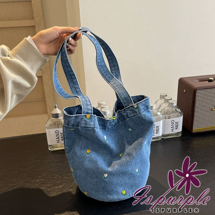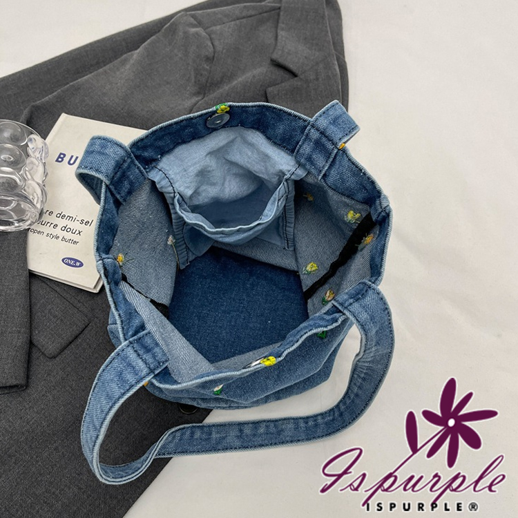 【iSPurple】韓風碎花 大容量牛仔布肩背水桶包/淺藍