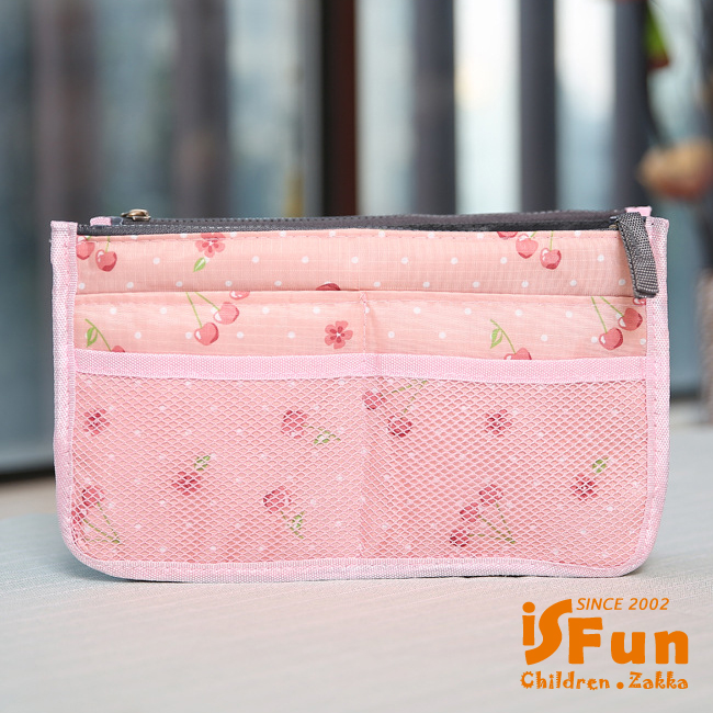 【iSFun】空氣感包*舖棉防撞化妝包中袋/粉色櫻桃